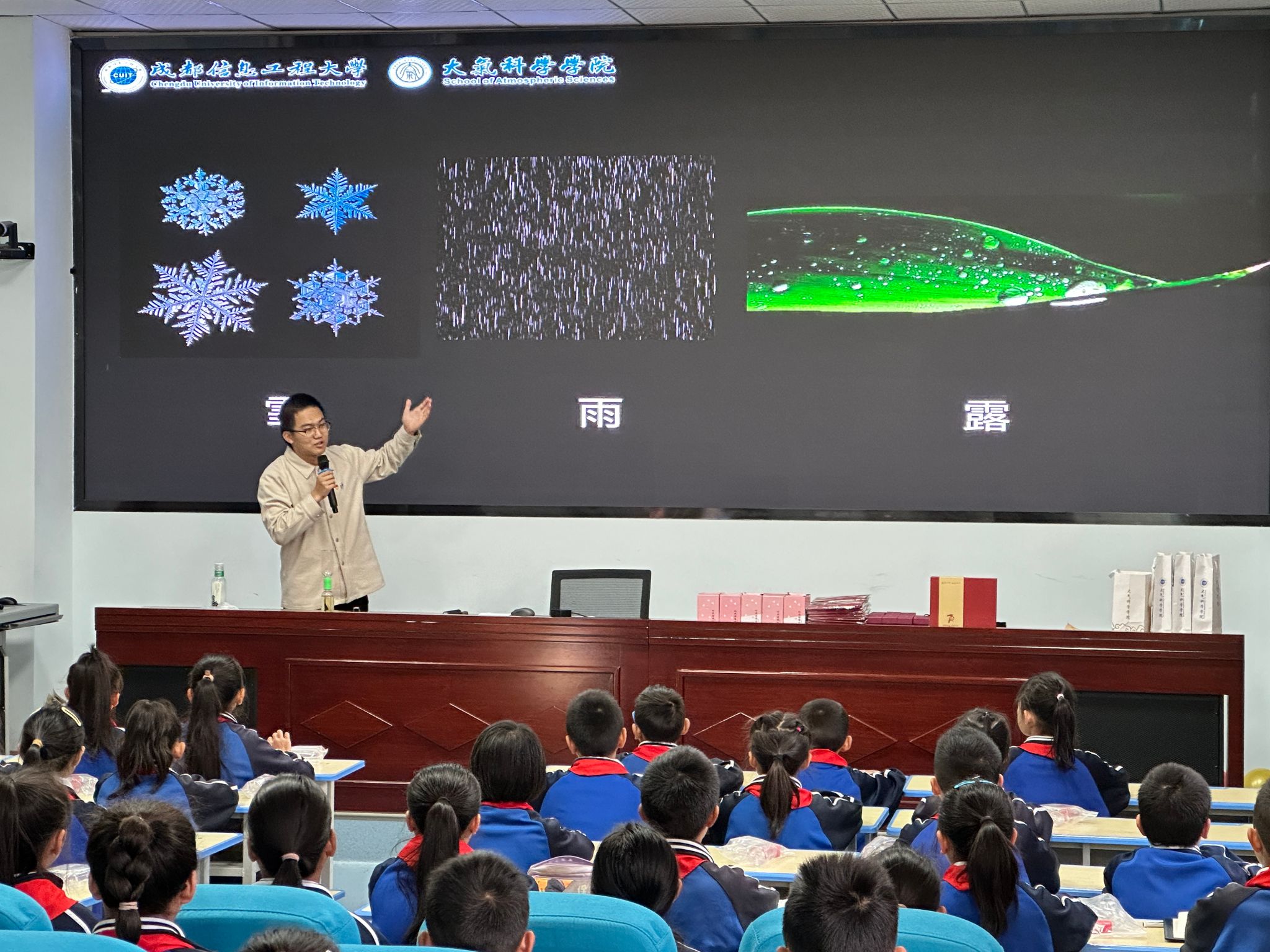 支教队员结合自身的专业知识,紧扣“服务社会、气象强国”的理念,结合西昌本地的地质气象灾害,为200余名小学生进行气象防灾减灾科普宣传,并亲自动手指导小朋友们制作简单的气象仪器。