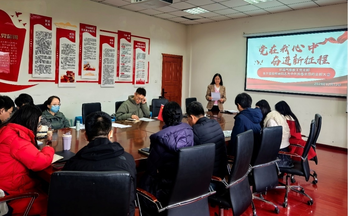 betway88西汉姆联环境气象教工党支部于2024年12月12日在气象楼310召开支部大会,集中学习党的二十届三中全会精神,讨论青年骨干教师修蒙同志入党。会议由支部书记张小玲主持。