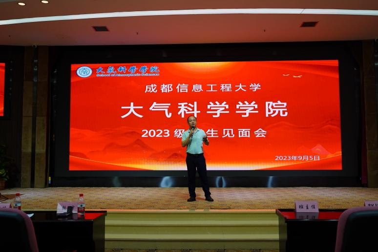 应用气象系主任康平从学院简介、学科专业、教学科研团队与平台、人才培养特色优势等多方面为新生答疑解惑。强调了本科学习的课程多、节奏快、难度大,鼓励新生要端正学习态度、做好学业规划、改进学习习惯与方法,有序有效适应大学学习生活。