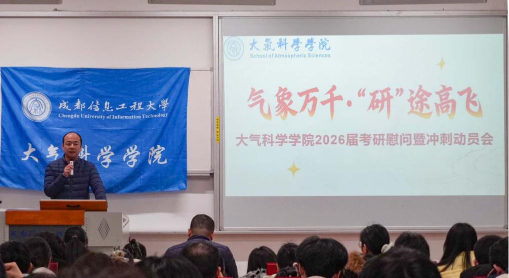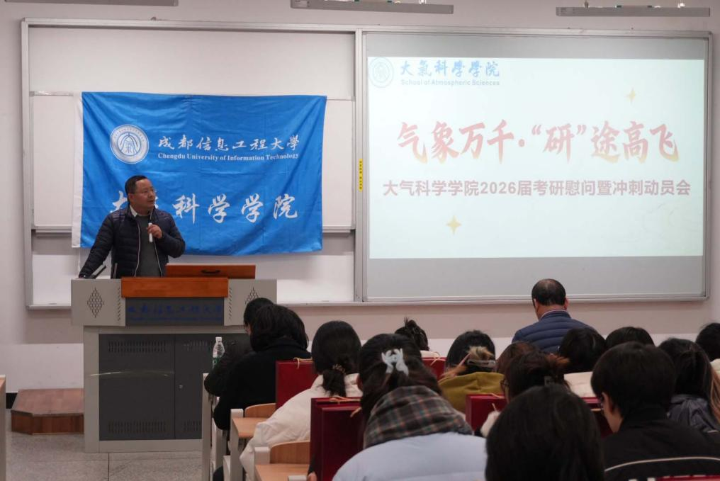 2025年12月11日,betway88西汉姆联在H1101教室举办“气象万千·研途高飞”2026届考研慰问暨冲刺动员会,为即将踏上考场的学子们送上暖心的关怀与诚挚的祝福。学院党委书记张宇、院长华维、副院长曾胜兰及各年级辅导员参加活动。活动由辅导员罗米娜主持。